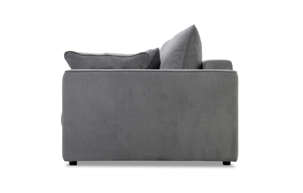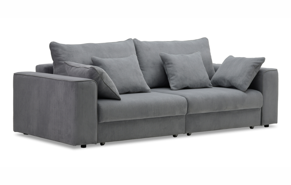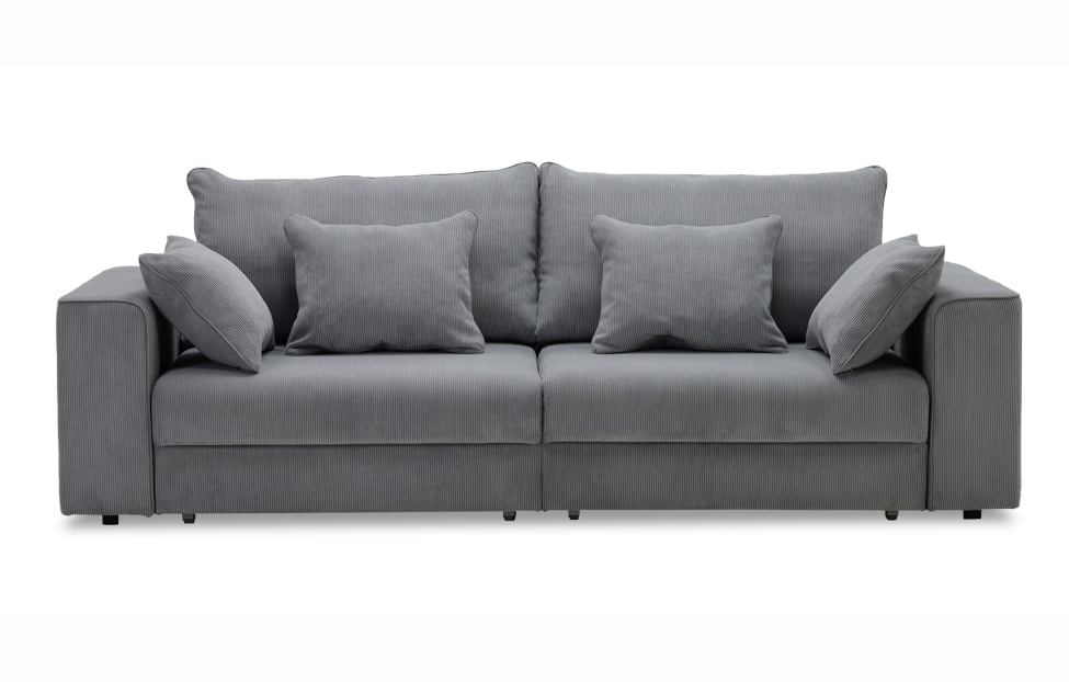 Диван выполнен в современном стиле, который будет гармонично смотреться в любом интерьере. Обивка из велюра c вертикальной текстурой актуального серого оттенка приятна на ощупь и легко чистится.